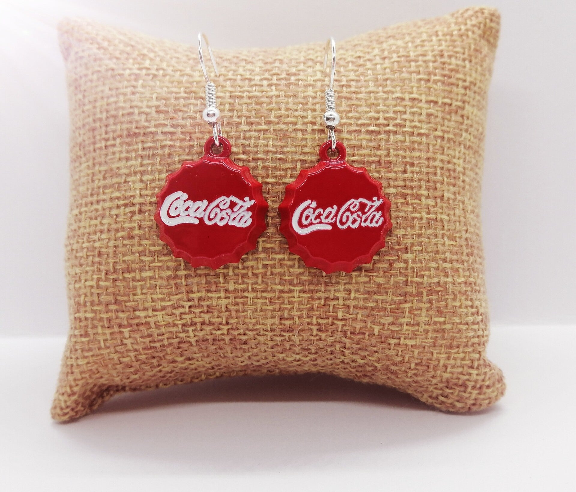 Iemand zin in een colaatje?Klein cola-dopje aan een zilverkleurige oorbel.De doorsnede van de dop is 1,5cm.