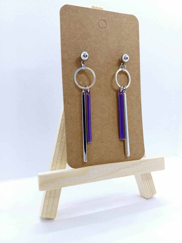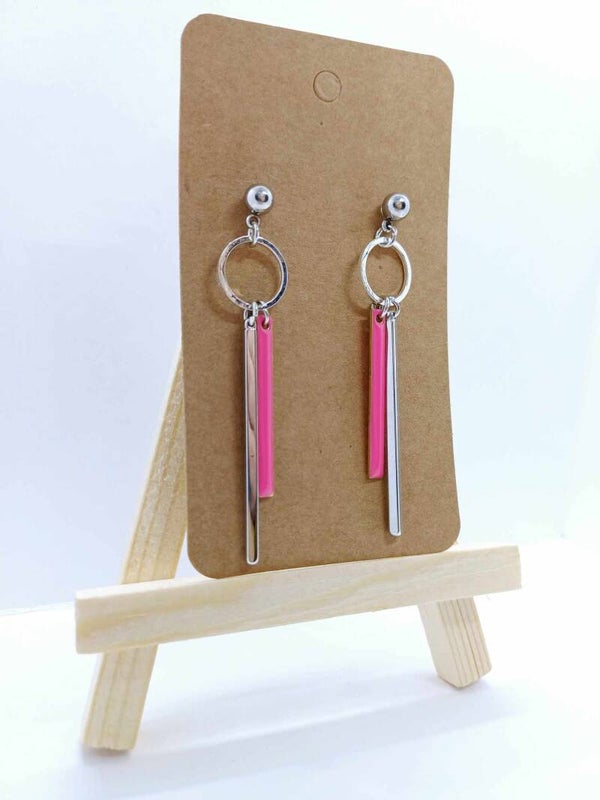 Zilverkleurige oorbellen met fijne staafjes.