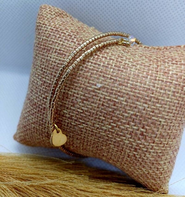 *Delica* verwijst naar de kraaltjes die gebruik zijn in dit armbandje. Delica is een soort kralen van Miyuki en het zijn kleine, kwaliteitsvolle glaskraaltjes en met een goudkleurig laagje.