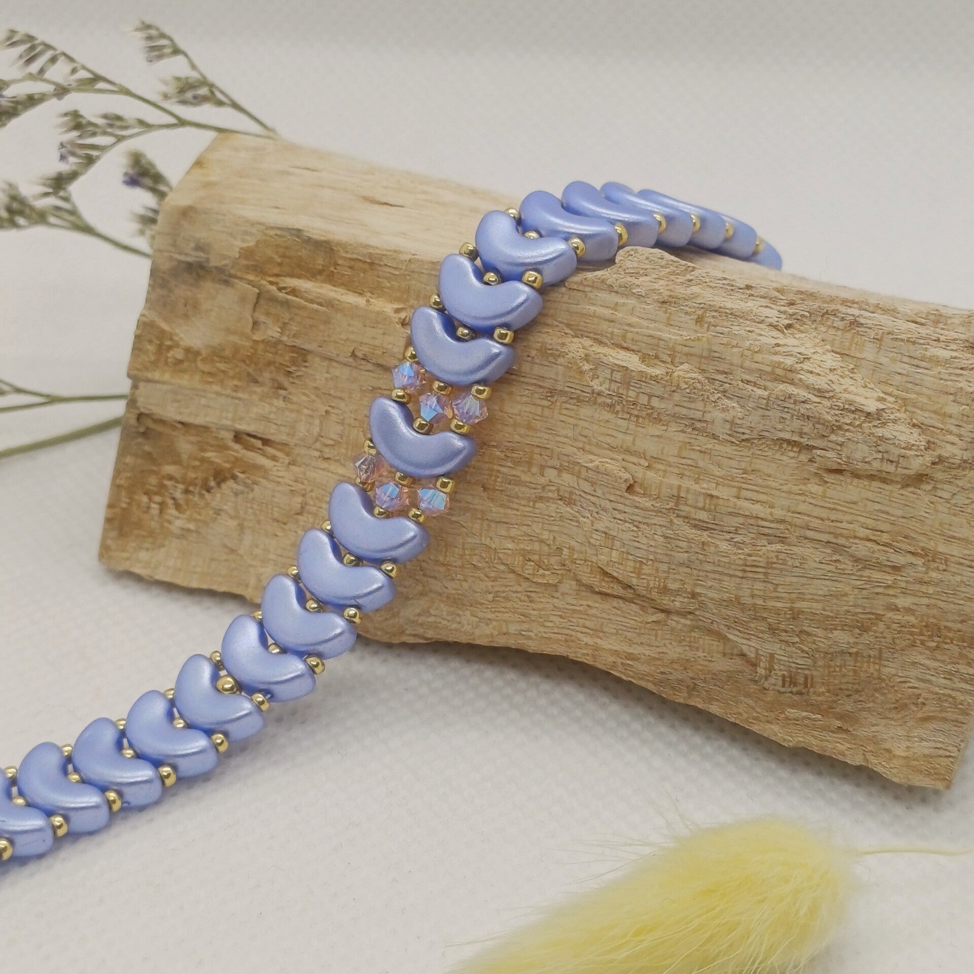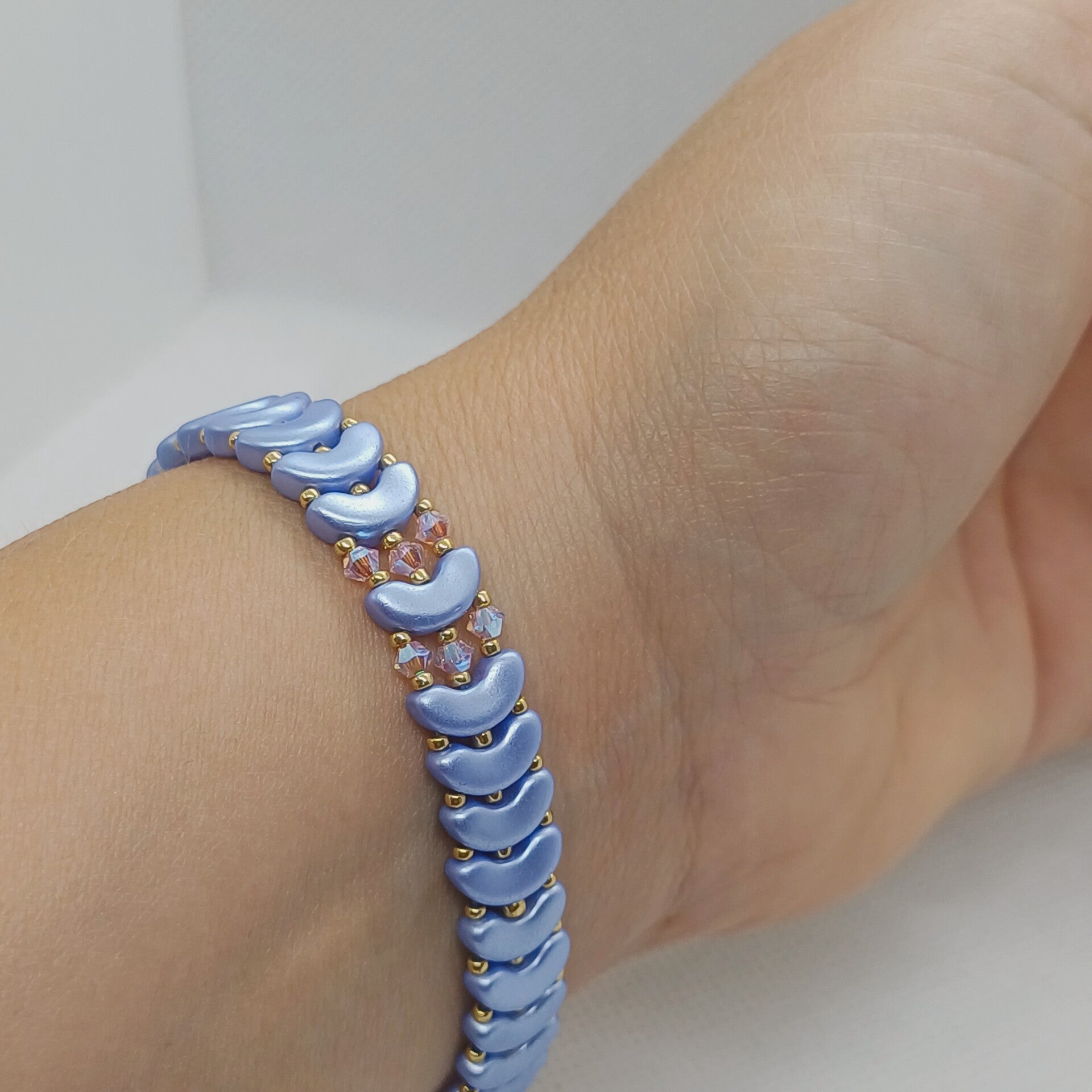 Dompel jezelf onder in de serene schoonheid van LunaBlu – een handgemaakte armband die zachtblauw laat stralen als nooit tevoren. De parelmoerachtige maankralen worden elegant omlijst door fonkelende kristallen en goudkleurige accenten. LunaBlu is een subtiele eyecatcher die elke outfit een vleugje mystiek en elegantie geeft.