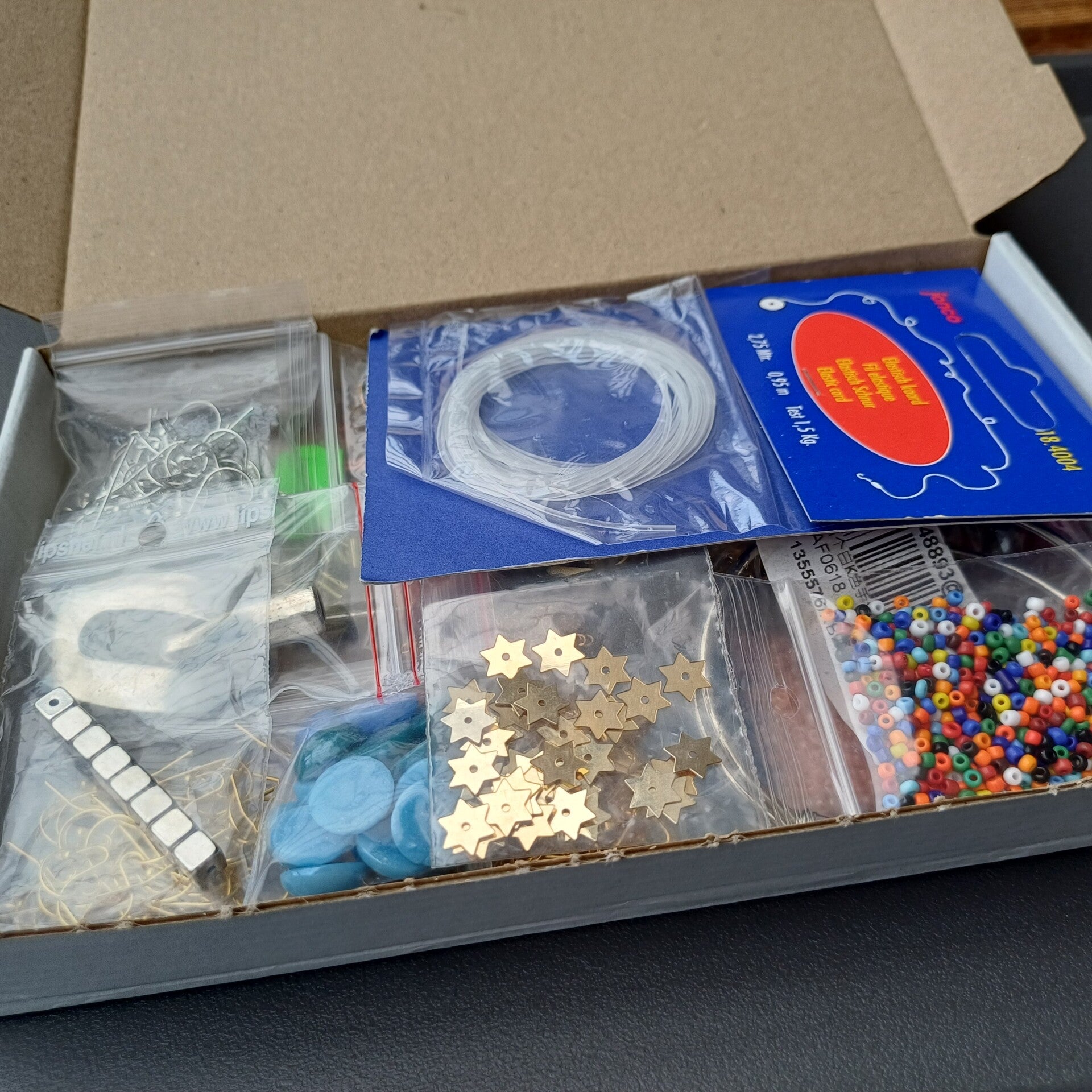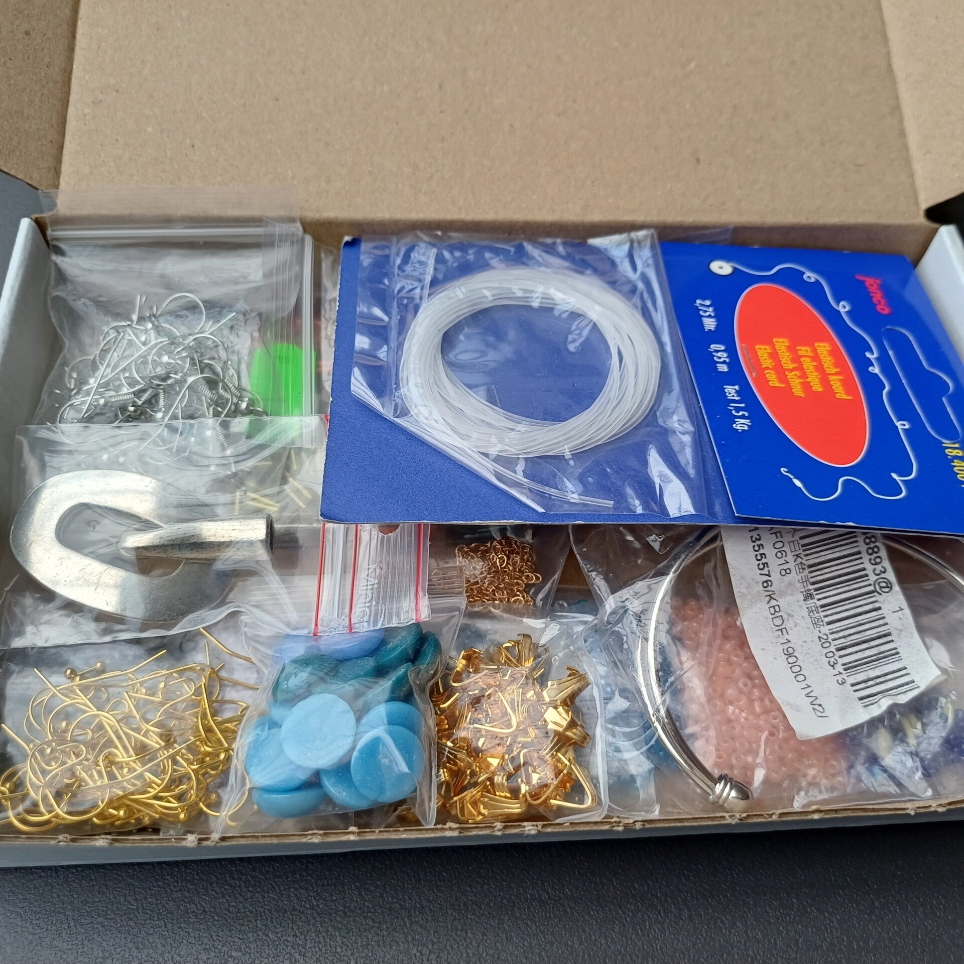 Alles wat je op de foto’s ziet, zit ook effectief in het doosje. Van kralen en oorbellen tot sluitingen en meer… een schatkistje voor creatieve zielen ✨