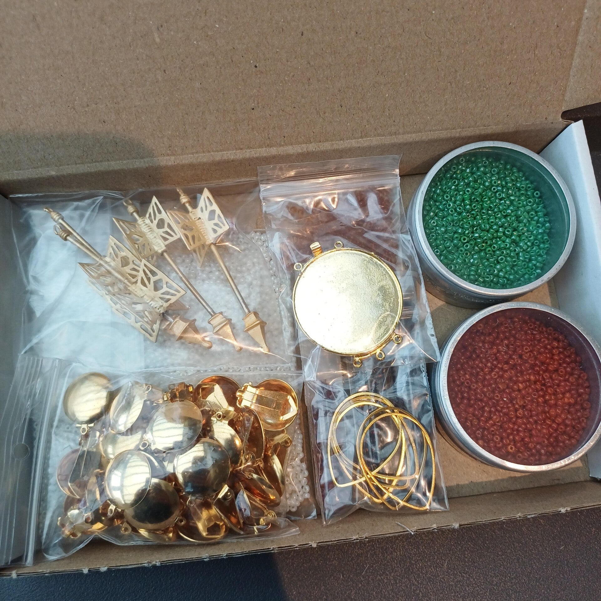Alles wat je op de foto’s ziet, zit ook effectief in het doosje. Van kralen en oorbellen tot sluitingen en meer… een schatkistje voor creatieve zielen ✨