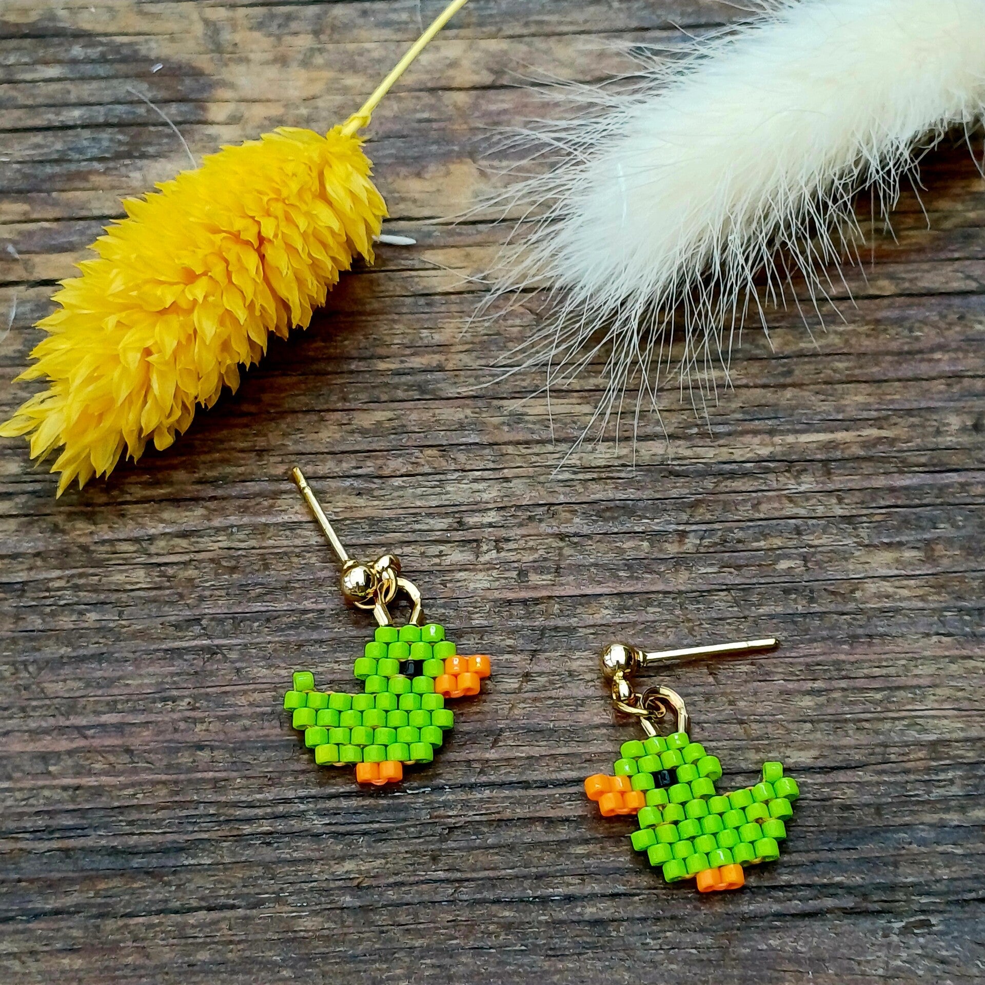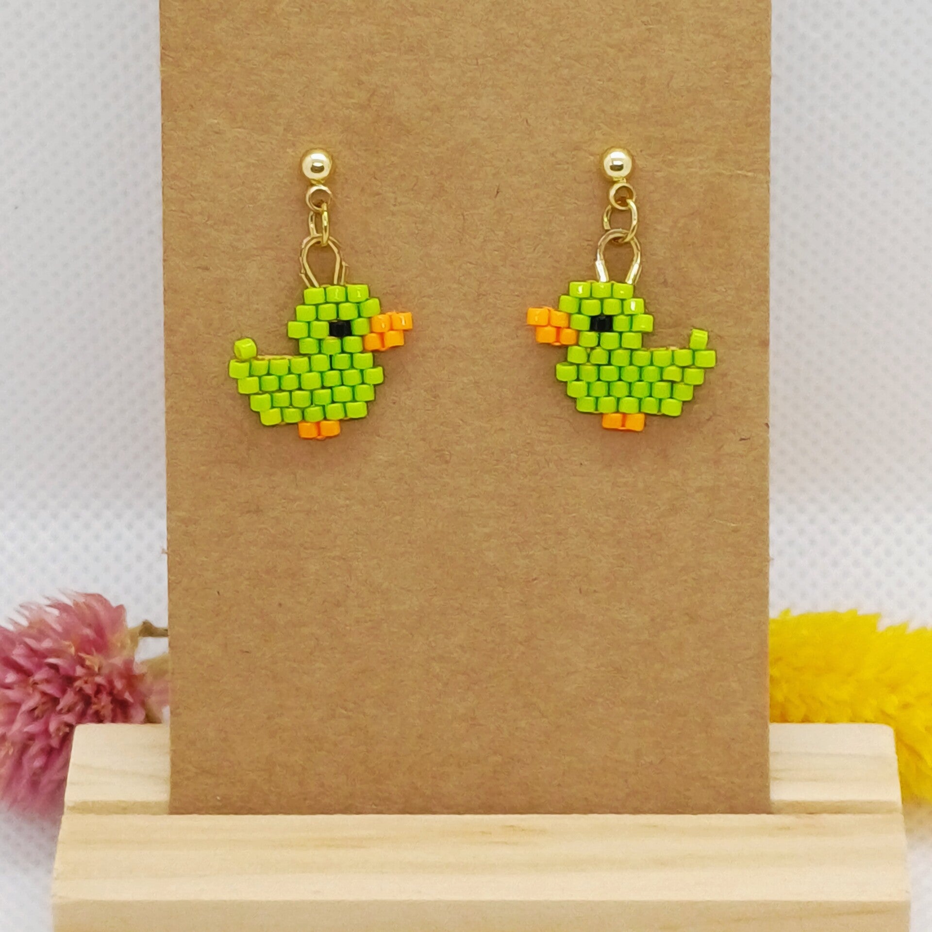Laat je oren kwaken van plezier met deze superkleine, handgemaakte eendjes! Elk eendje is opgebouwd uit mini Miyuki Delica kraaltjes met de brickstitch techniek – stevig én verfijnd. Ze meten slechts 1 cm en bungelen speels aan een goudkleurig stekertje van roestvrij staal.
