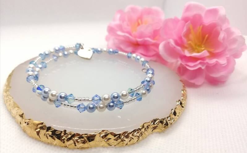 IJsBloesem brengt de frisse, kristallen zachtheid van winterlicht samen met de elegantie van parels. Deze armbanden zijn met de hand vervaardigd uit Swarovski bicones en parels, die samen een sprankelend, ijzig patroon vormen — alsof rijp en dauwdruppels zich sierlijk hebben vastgeklampt aan een bloesemtak.