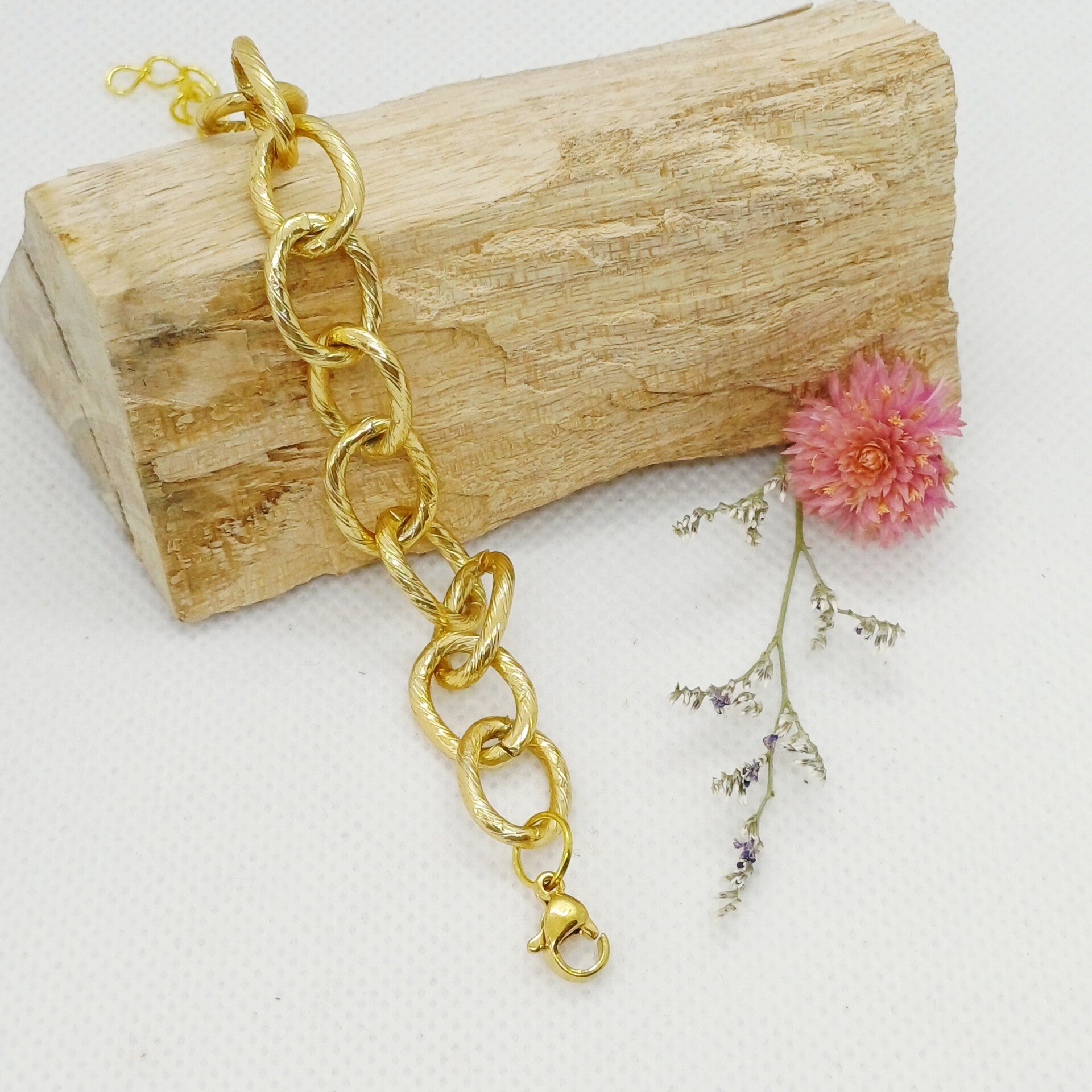 SchakelZiel is een krachtige goudkleurige armband met royale schakels die symbool staan voor verbinding, vertrouwen en innerlijke kracht. Elke schakel vormt een eigen verhaal, samen verweven tot één stijlvol geheel.