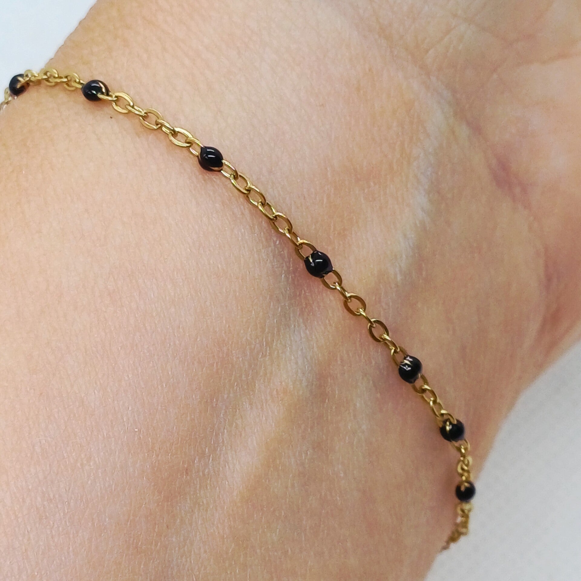 De armband draagt licht en comfortabel om de pols en laat zich prachtig combineren met andere armbanden, of solo als ingetogen accent.