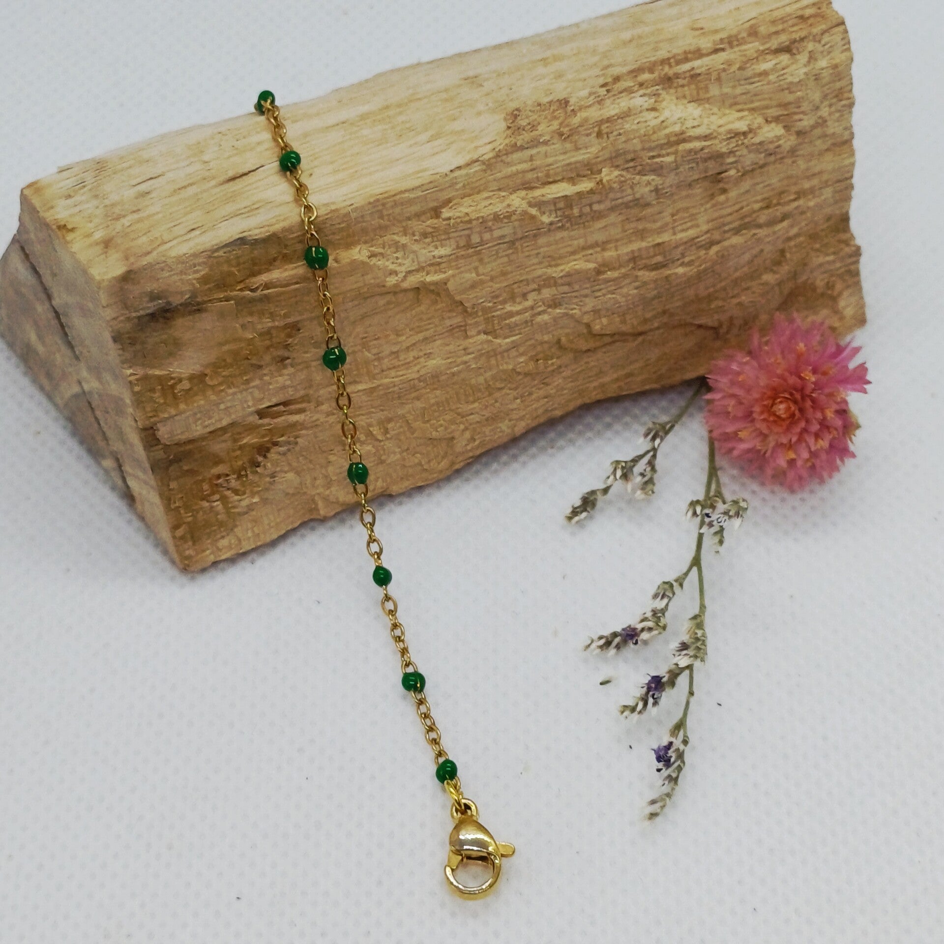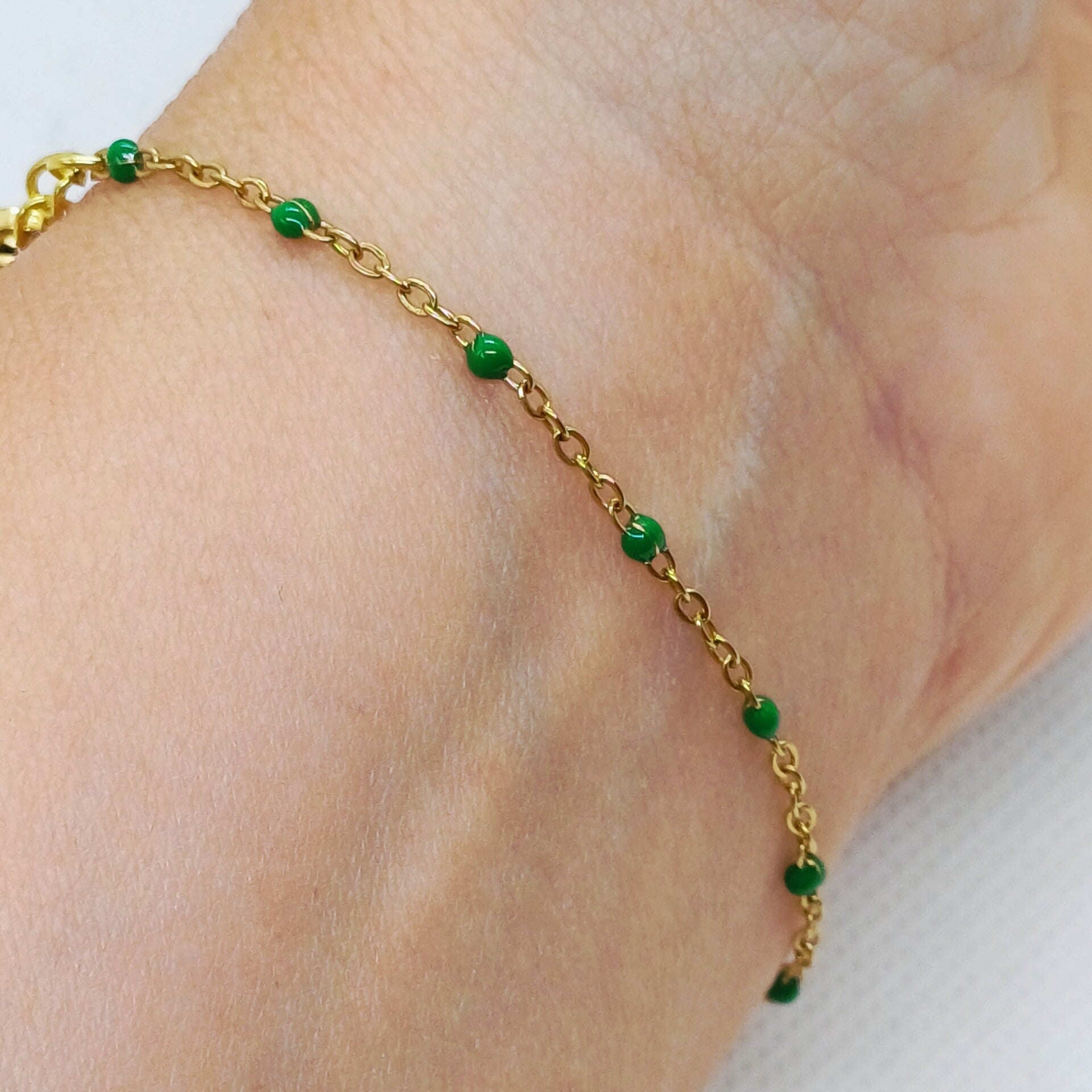 De armband draagt licht en comfortabel om de pols en laat zich prachtig combineren met andere armbanden, of solo als ingetogen accent.