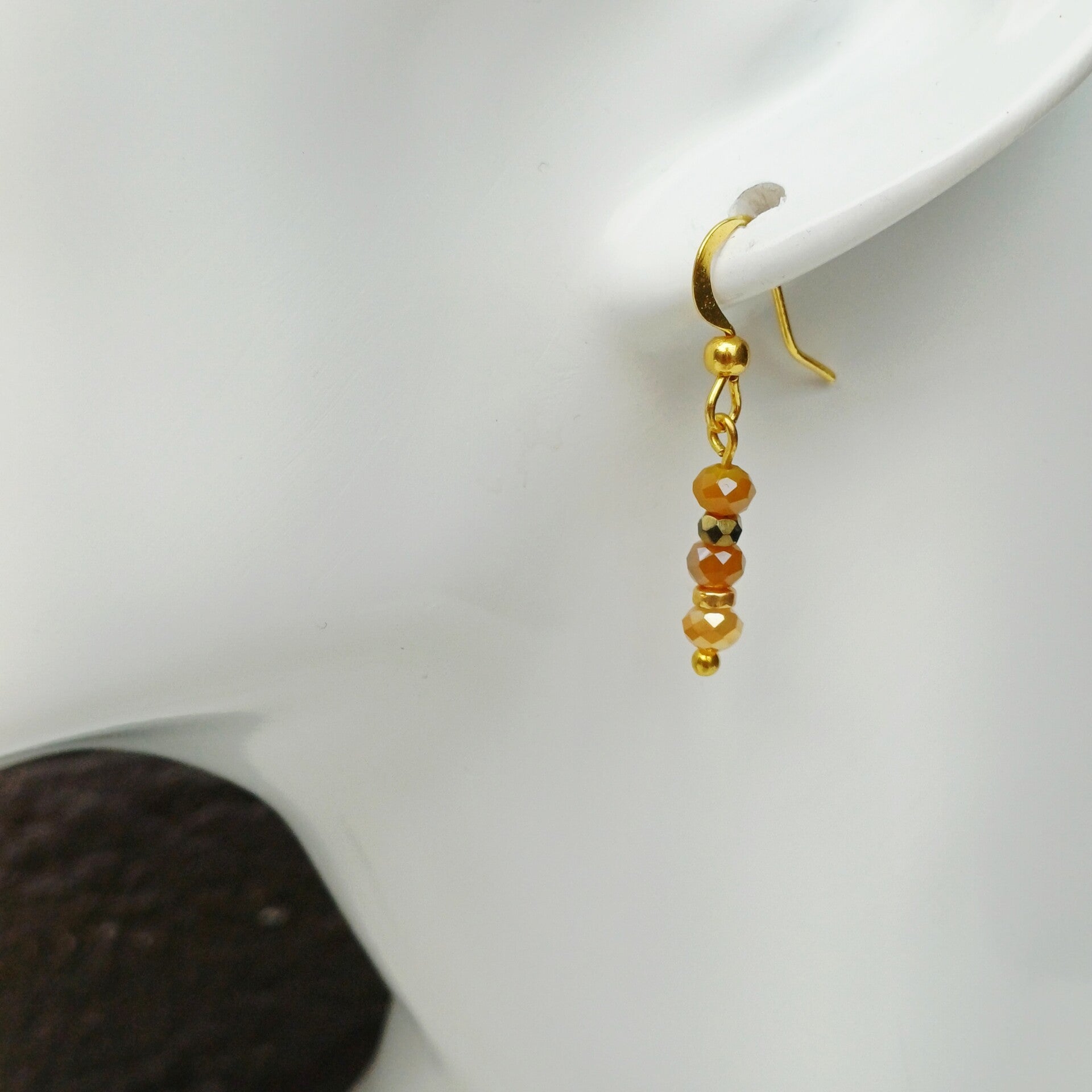 LichtDruppel Amber is een verfijnde oorbel met een warme, zonnige uitstraling. De glanzende Tsjechische rondelkralen vangen het licht subtiel en zorgen voor een zachte gloed bij elke beweging.