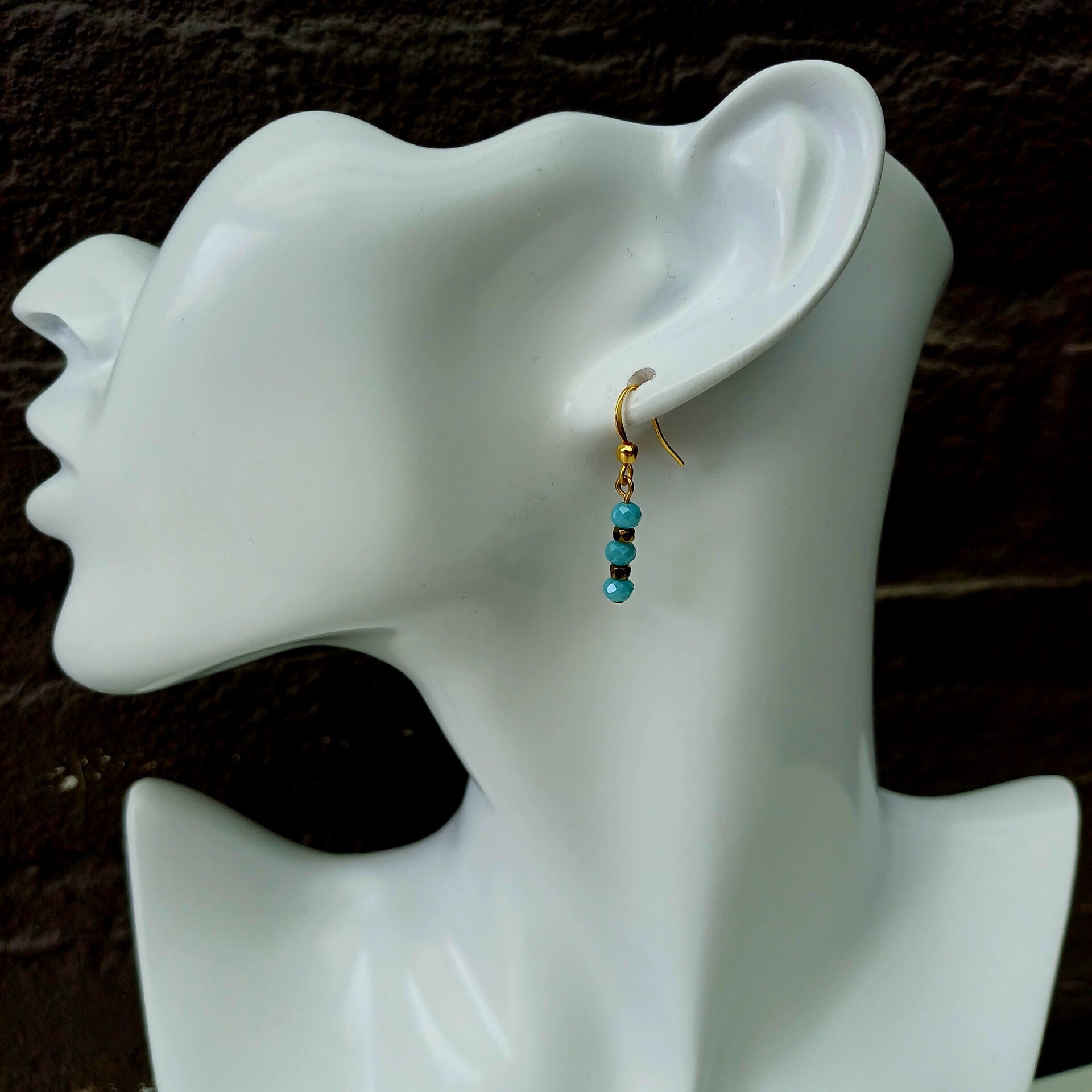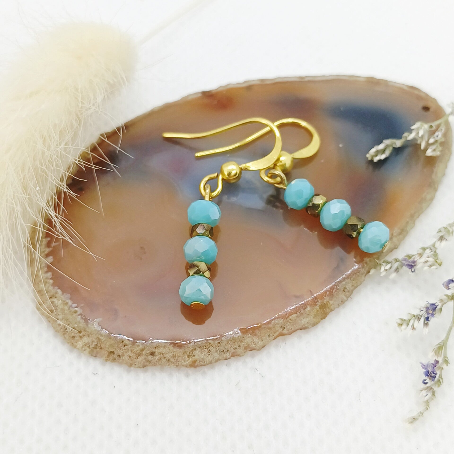 LichtDruppel OchtendZee is een verfijnde oorbel met een warme, zonnige uitstraling. De glanzende Tsjechische rondelkralen vangen het licht subtiel en zorgen voor een zachte gloed bij elke beweging.