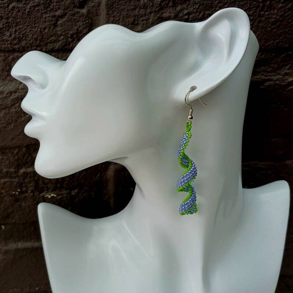 SpiraalDans is een paar speelse, elegante oorbellen waarin beweging en vakmanschap samenkomen. Door het bijzondere patroon vormen de kralen een zachte spiraal die lijkt te dansen bij elke beweging.